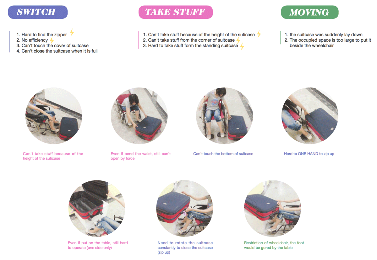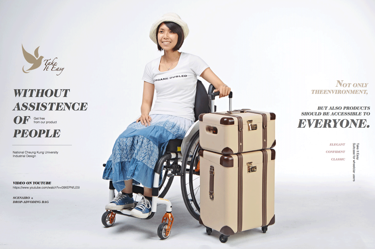 “Take It Easy” is a suitcase designed for wheelchair users. It solves the problems of inconvenient use and psychological pressure of wheelchair users with suitcases on the market, enabling wheelchair users to pack their luggage on their own, without assistances of other people.